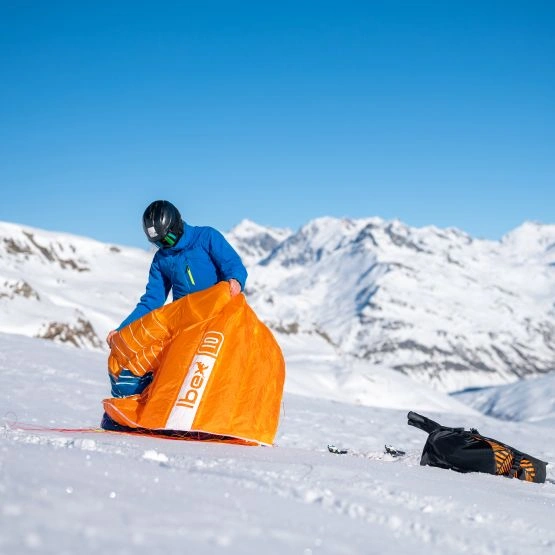 Ibex jest wykonany z wysokiej jakości materiału Canopy 40D i jest wyposażony w 27 lub 29 komór. Stop 'n Go – 5 linka bezpieczeństwa gwarantuje bezpieczne lądowanie latawca w każdym miejscu. Ibex jest wyposażony w olinowanie Liros i blokami Ronstan Orbit dla precyzyjnego prowadzenia.