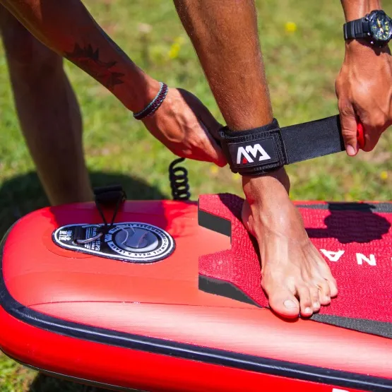 Łatwy w mocowaniu i zapinaniu. Przy użyciu jednej ręki bezproblemu poradzisz sobie z zapięciem i odpięciem leasha, a deska nie odpłynie Ci zbyt daleko