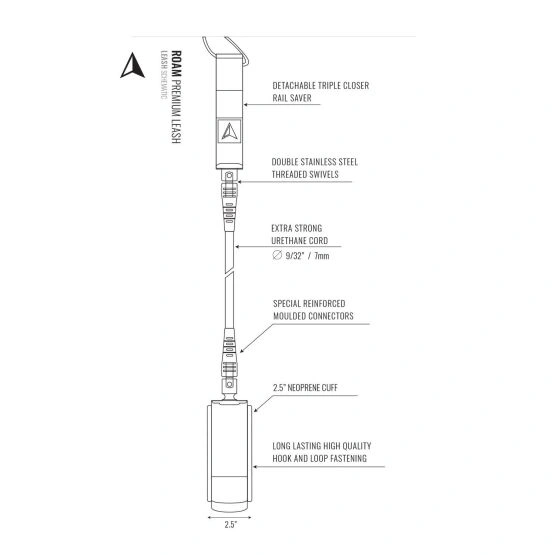 ROAM Surfboard Premium to świetny leash zaprojektowany na każde warunki. 7 mm linka uretanowa, super wygodna neoprenowa opaska na kostkę (ze zintegrowaną kieszonką na klucze), krętliki ze stali nierdzewnej oraz potrójny rzep w Rail Saver zapewniają trwałość i komfort.