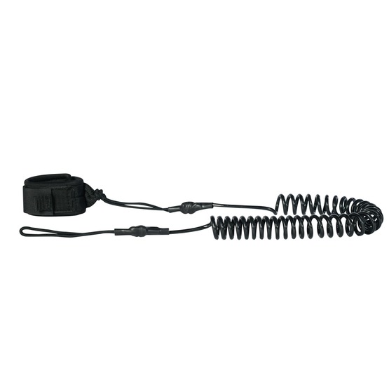 Skręcany leash zapewniający bezpieczeństwo podczas pływania na SUP-ie. Przypinany do kostki za pomocą neoprenowej antypoślizgowej opaski z mocnym rzepem. Linka o grubości 7 mm wykonana z bardzo wytrzymałego i elastycznego tworzywa rozciąga się do ok. 304 cm