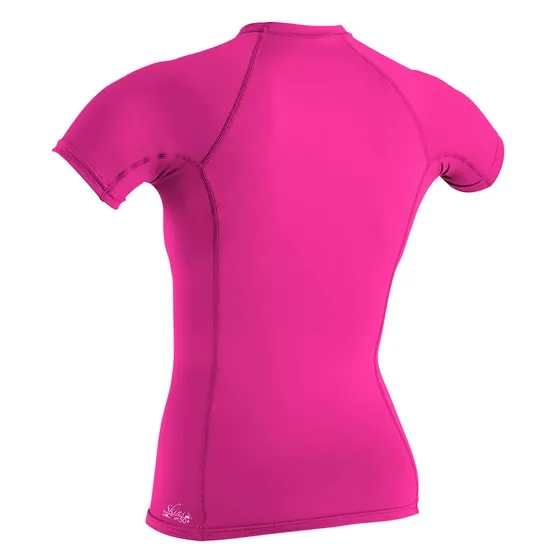 Damska koszulka z krótkim rękawem O'Neill Basic Skins S/S Rash Guard oferuje filtr S.P.F. 50+, dzięki temu chroni skórę przed promieniowaniem ultrafioletowym. Oprócz tego koszulka zabezpieczy Cię przed wiatrem i możliwymi otarciami podczas sesji na wodzie. Miękki elastyczny materiał zapewnia niesamowity komfort noszenia, a pętelka w dolnej części pozwala przypiąć lycrę do szortów.