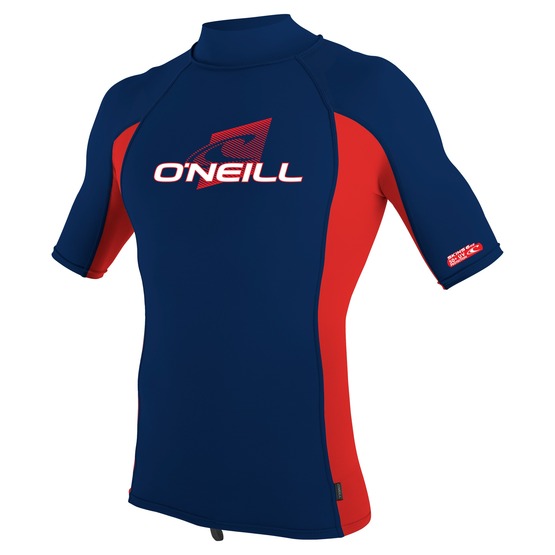 Juniorska koszulka z krótkim rękawem O’Neill Basic Premium Skins S/S Rash Guard Turtleneck oferuje filtr S.P.F. 50+, dzięki temu chroni skórę przed promieniowaniem ultrafioletowym. Oprócz tego koszulka zabezpieczy Cię przed wiatrem i możliwymi otarciami podczas sesji na wodzie. Miękki elastyczny materiał zapewnia niesamowity komfort noszenia, a pętelka w dolnej części pozwala przypiąć lycrę do szortów.