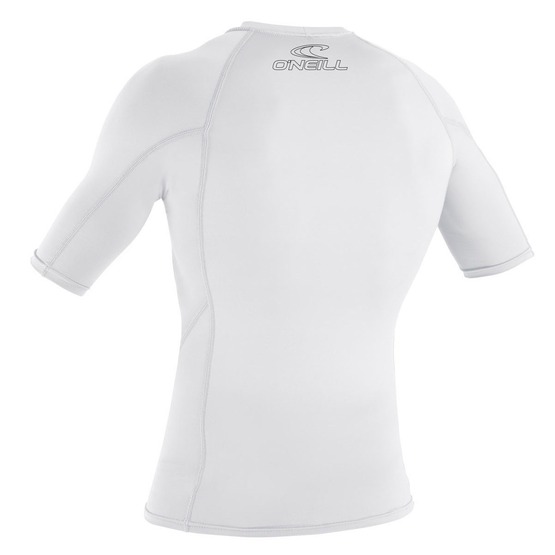 Juniorska koszulka z krótkim rękawem O'Neill Basic Skins S/S Rash Guard oferuje filtr S.P.F. 50+, dzięki temu chroni skórę przed promieniowaniem ultrafioletowym. Oprócz tego koszulka zabezpieczy Cię przed wiatrem i możliwymi otarciami podczas sesji na wodzie. Miękki elastyczny materiał zapewnia niesamowity komfort noszenia, a pętelka w dolnej części pozwala przypiąć lycrę do szortów.