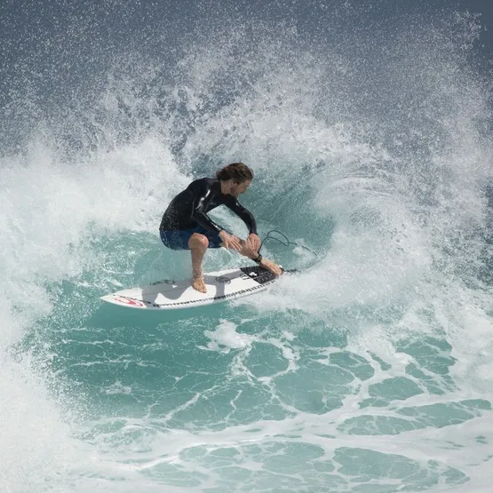 Użyty w produkcji syntetyczny materiał charakteryzuje się dużą rozciągliwością i daje duży zakres ruchów podczas uprawiania sportów wodnych