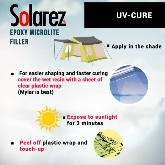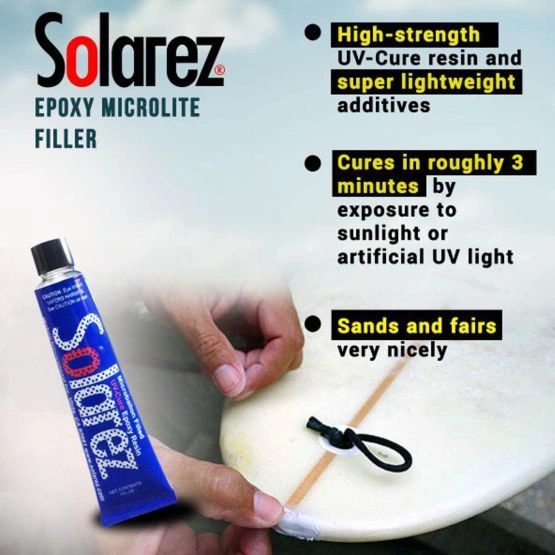 Masa uszczelniająca Solarez Microlite Epoxy UV to produkt idealny do naprawy desek i sprzętu wodnego. Dzięki szybkiemu utwardzaniu pod wpływem promieni UV zapewnia trwałe i odporne na warunki atmosferyczne zabezpieczenie, niezbędne dla każdego miłośnika sportów wodnych.