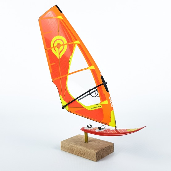 Każdy model został bardzo realistycznie odtworzony w skali 1:16 na podstawie oryginalnych desek i pędników. Żagle zostały wykonane z takiego samego monofilmu jak te prawdziwe, z dbałością o każdy, nawet najmniejszy detal, taki jak linki trapezowe czy nadruk z parametrami. Deska jest ustawiona na stylowej drewnianej podstawce, która bardzo elegancko eksponuje cały zestaw.