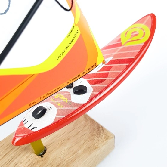 Model wiernie odwzorowuje legendarną deskę Goya Nitro oraz żagiel Banzai Pro – symbole jakości i doskonałości w windsurfingu. Precyzyjne detale sprawiają, że wygląda jak miniatura sprzętu, którego używają profesjonaliści na falach