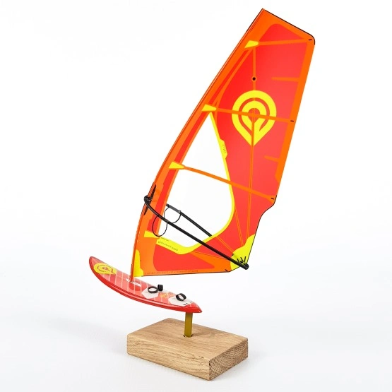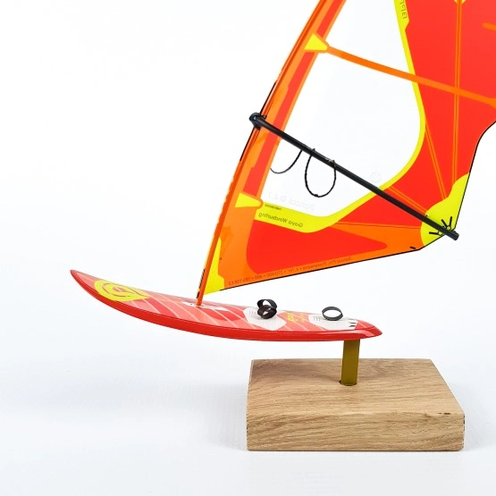 Każdy model został bardzo realistycznie odtworzony w skali 1:16 na podstawie oryginalnych desek i pędników. Żagle zostały wykonane z takiego samego monofilmu jak te prawdziwe, z dbałością o każdy, nawet najmniejszy detal, taki jak linki trapezowe czy nadruk z parametrami. Deska jest ustawiona na stylowej drewnianej podstawce, która bardzo elegancko eksponuje cały zestaw.