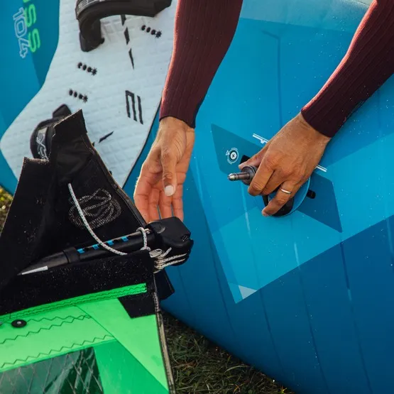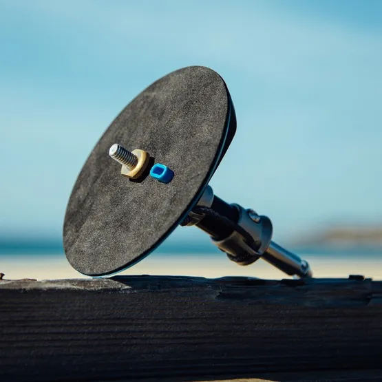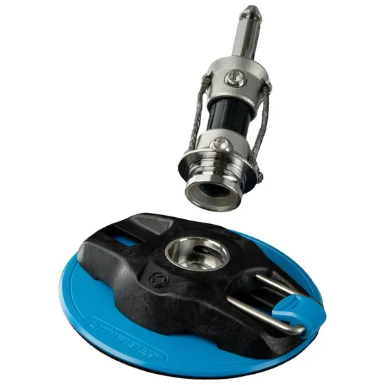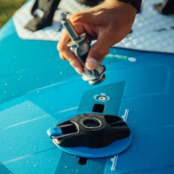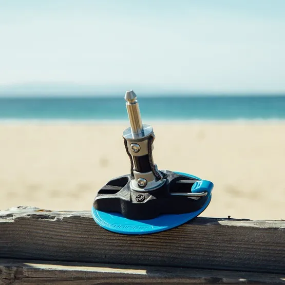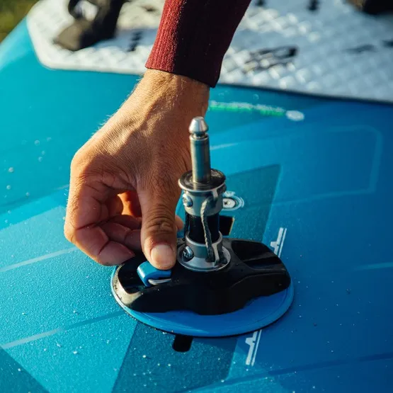 Uformowana z wytrzymałego tworzywa sztucznego POK podstawa palety jest ergonomiczna i łatwa do odkręcenia, nawet po intensywnych sesjach. Płytka posiada również przycisk, który zabezpiecza dwa przesuwane bolce. Jego użycie zwalnia złącze, umożliwiając demontaż przegubu z pinem od „talerzyka” dzięki czemu nie musisz odkręcać palety gdy chowasz deskę do pokrowca. Nie stracisz swojego idealnego ustawienia palety z poprzedniej genialnej sesji na wodzie.