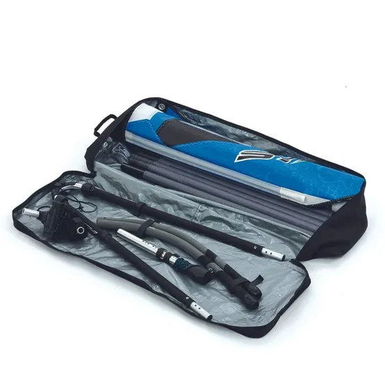 Żagiel został wykonany głównie z dacronu, który charakteryzuje się dużą wytrzymałością. Posiada również wstawki z monofilmu. Składany epoxydowy maszt oraz regulowany bom pozwalają łatwo spakować wszystkie elementy zestawu do poręcznej torby o wymiarach 105 x 35 x 16 cm. Dzięki kompaktowym rozmiarom dojazd na spot będzie o wiele łatwiejszy – w końcu nie musisz transportować sprzętu na dachu samochodu!
