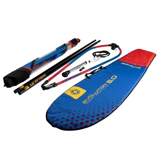 Łatwy do taklowania i trymowania pędnik jest kompletnym zestawem, który zawiera wszystkie elementy niezbędne do wyjścia na wodę. Połącz wszystkie części, podepnij pędnik do deski i ruszaj na wodę! Po złożeniu pędnika możesz spakować go do dołączonej w zestawie torby, która zapewnia komfortowy transport i przechowywanie.