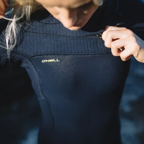 O’neill Hyperfreak 4/3+ Chest Zip Full to damska pianka, w której wykorzystano neopren TechnoButter 3 i TB3X zawierający 90% włókien z recyklingu. Anatomiczny krój i elastyczność neoprenu gwarantuje idealne dopasowanie do sylwetki. Pianka zapinana jest na przodzie, dzięki temu mniej wody przedostanie się do jej wnętrza. Ten model sprawdzi się podczas przejściowych pór roku.