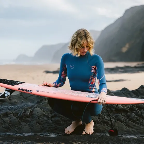 O’Neill Bahia 3/2 jest uszyta z super lekkiego neoprenu UltraFlex. Ta wyjątkowa zrównoważona technologia w 80% składa się z włókien pochodzących z recyklingu. Pianka jest wyjątkowo wygodna w zakładanie i zdejmowaniu, a wszystko za sprawą zamka umieszczonego na plecach. Wszystkie szwy zostały wzmocnione, aby zapewnić, że pianka będzie służyć Ci przez niezliczone godziny na wodzie. W piance zastosowane płaskie i oddychające szwy, które minimalizują ryzyko otarć i zapewniają wygodę ruchów co doceni każda riderka, która spędza dużo czasu na wodzie. Dla dodatkowego wzmocnienia pianki przed jej otarciem od ostrej deski materiał na kolanach został wzmocniony panelami – Krypto Knee Padz. Nie będziesz musiała martwić się o to gdzie schować klucze, ponieważ pianka posiada specjalną kieszonkę z pętelką na klucz, dzięki której skupisz się wyłącznie na surfowaniu. Aby jak najmniej wody przedostawało się do środka, mankiety zostały dodatkowo uszczelnione.