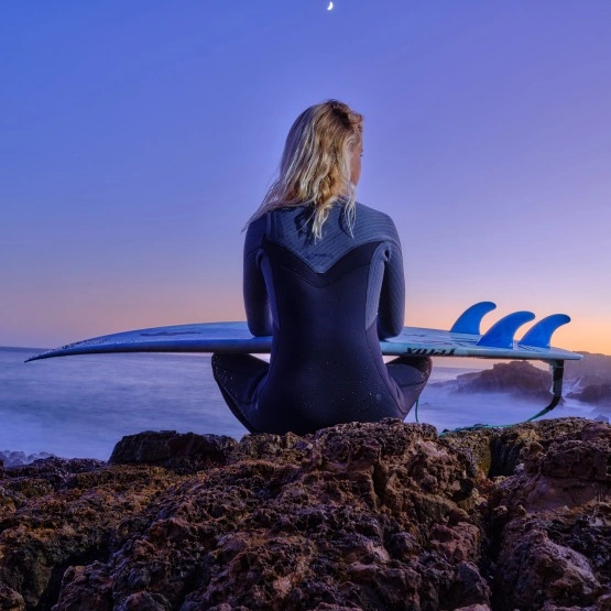 O’Neill Blueprint 5/4+ to ciepła damska pianka z długimi rękawami i długimi nogawkami. Wykonana z neoprenu o grubości 4,5 mm oraz w newralgicznych miejscach – najbardziej narażonych na wychłodzenie – 5,5 mm. Oprócz zapewniania komfortu termicznego, neopren minimalizuje ryzyko otarć skóry.