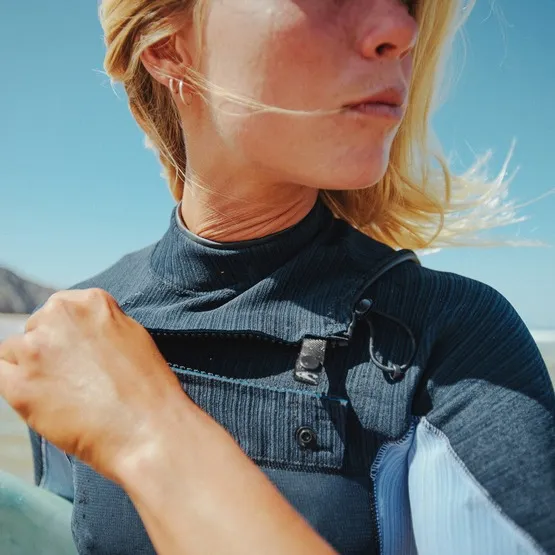 Chest Zip umieszczony jest na szerokości klatki piersiowej, więc jest krótki i znajduje się wysoko, dlatego przepuszcza mniej wody i utrzymuje dłużej komfort podczas sesji