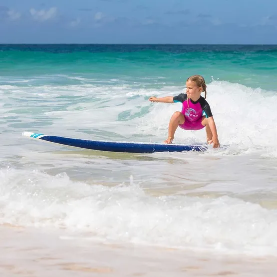 Elastyczny neopren zachowuje swoje właściwości w każdych warunkach, dzięki temu dobrze leży, dopasowując się do ciała i zapewnia swobodę ruchów. Pianka posiada filtr 50+ U.P.F., który zapewni Twojemu dziecku ochronę przed szkodliwym promieniowaniem słonecznym. Wysoka jakość i wytrzymałość konstrukcji zapewnia trwałość i pozwala korzystać z pianki przez lata.