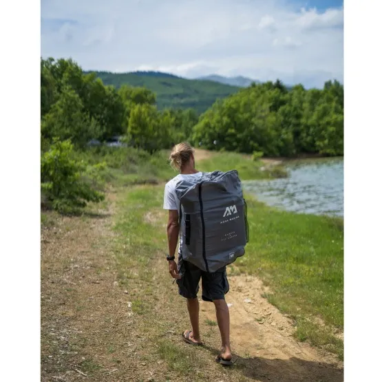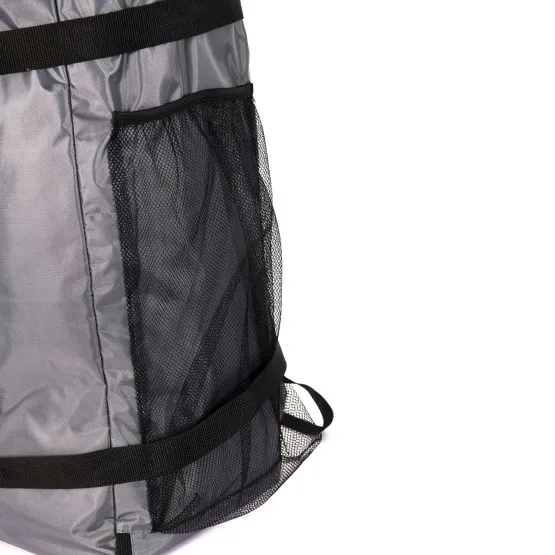 Plecak o ergonomicznym kształcie, posiada wewnętrzną kieszeń przeznaczoną na drobniejsze przedmioty takie jak: fin czy zestaw naprawczy. Do plecaka zmieścisz wszystkie niezbędne akcesoria. Na przodzie umieszczone są regulowane paski, do których możesz przytroczyć rzeczy, które chcesz mieć pod ręką. Boczna kieszeń pomieści pompkę czy wiosło. Wygodne szelki wyściełane pianką nie będą powodować uczucia dyskomfortu podczas docierania na miejsce zbiórki. O to, by plecak dobrze przylegał podczas wędrówki, zadba pas piersiowy. Na boku i u góry zamieszono uchwyty do komfortowego przenoszenia plecaka.