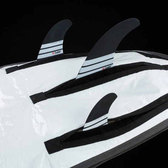 Nie musisz demontować finów na czas transportu! Pokrowiec posiada specjalne sloty, które umożliwią schowanie deski bez konieczności zdejmowania stateczników