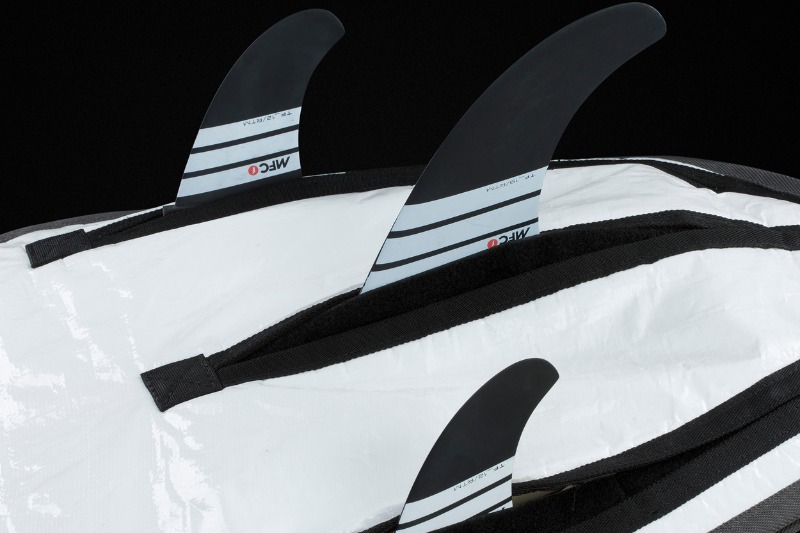 Nie musisz demontować finów na czas transportu! Pokrowiec posiada specjalne sloty, które umożliwią schowanie deski bez konieczności zdejmowania stateczników