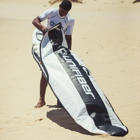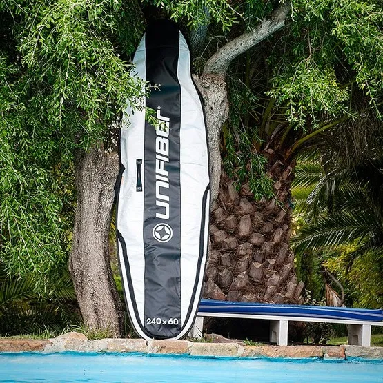 Stanowi on najlepszą ochronę dla Twojej deski zarówno podczas transportu jak i przechowywania jej np. po zakończeniu sezonu. Wyposażona w podwójną rączkę ułatwiającą przenoszenie oraz solidny zamek, umieszczony tak, aby nie uszkodził i nie porysował deski. Zamek na spodzie pokrowca pozwala na przechowywanie deski bez konieczności wykręcania statecznika. Pokrowiec zapewnia również ochronę gdy deska stoi pionowo. Jest to najmocniejszy i najbardziej wytrzymały pokrowiec Unifiber’a.