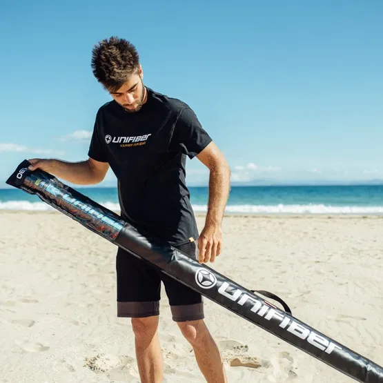 Maszty, szczególnie te o wysokiej zawartości węgla, to delikatne i wartościowe przedmioty, wymagające najlepszej ochrony. Doskonałe pokrowce Unifiber zostały wykonane z dbałością o każdy szczegół, byś miał pewność, że Twój maszt dotrze na spot cały i zdrowy. Od spodu pokryty jest specjalnym materiałem Tarpaulin, który zapewnia doskonałą izolację przed czynnikami zewnętrznymi. Wierzchnia warstwa została wykonana z wodoodpornego polierstru WRP. Dodatkowo wyposażony w rączkę, która umożliwia wygodny i łatwy transport.