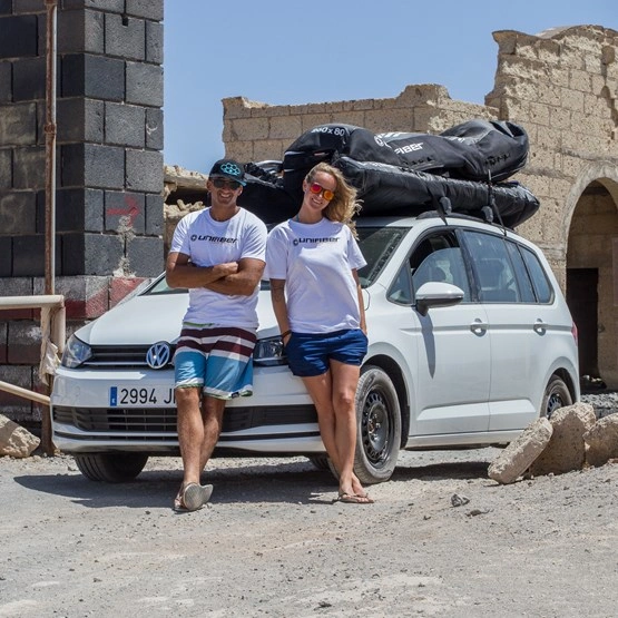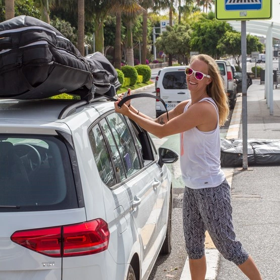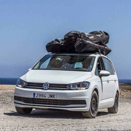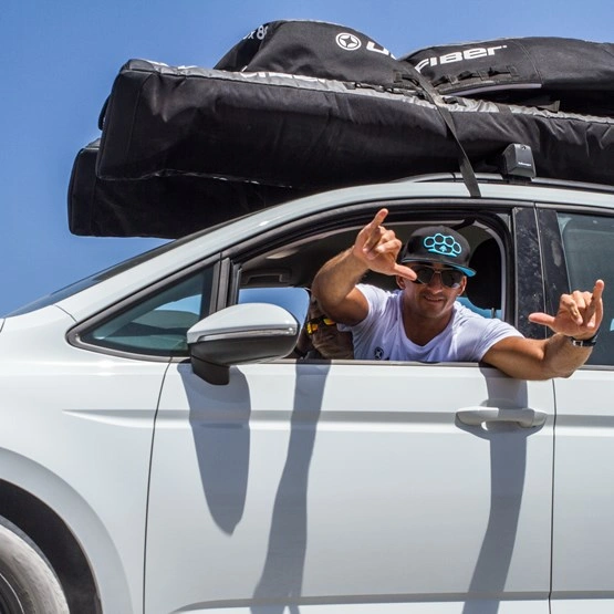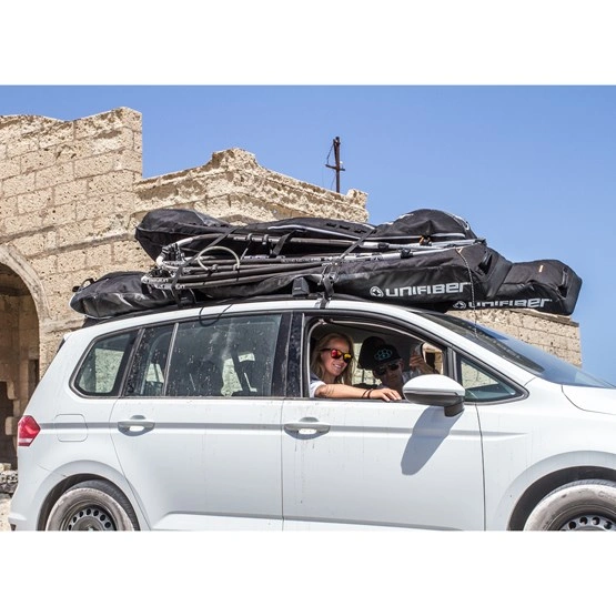 Unifiber Roofrack-quiverbag dzięki swojemu zoptymalizowanemu aerodynamicznie kształtowi nadaje się idealnie do przewożenia sprzętu na dachu samochodu. Mieści aż 3 do 4 kompletnych pędników.