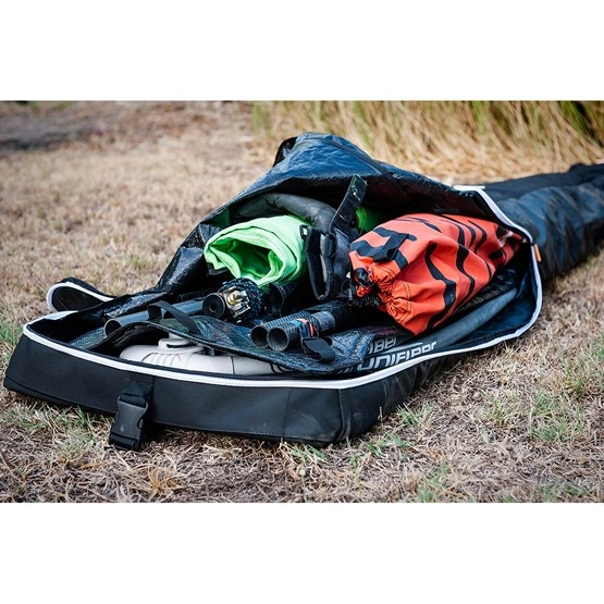Posiada wiele punktów mocowania do bagażnika dachowego, które pozwalają na pewny montaż pasami bez obawy o uszkodzenie sprzętu. Jest bardzo pojemny. Można w nim przewozić nawet 3-4 pędniki – żagle, bomy, a nawet dwuczęściowe maszty o długości do 490. Wykonany z wodoodpornego poliestru 600D, dodatkowo wzmocnionego na krawędziach. Świetny wybór na podróże, podczas których potrzebujesz cały swój sprzęt.