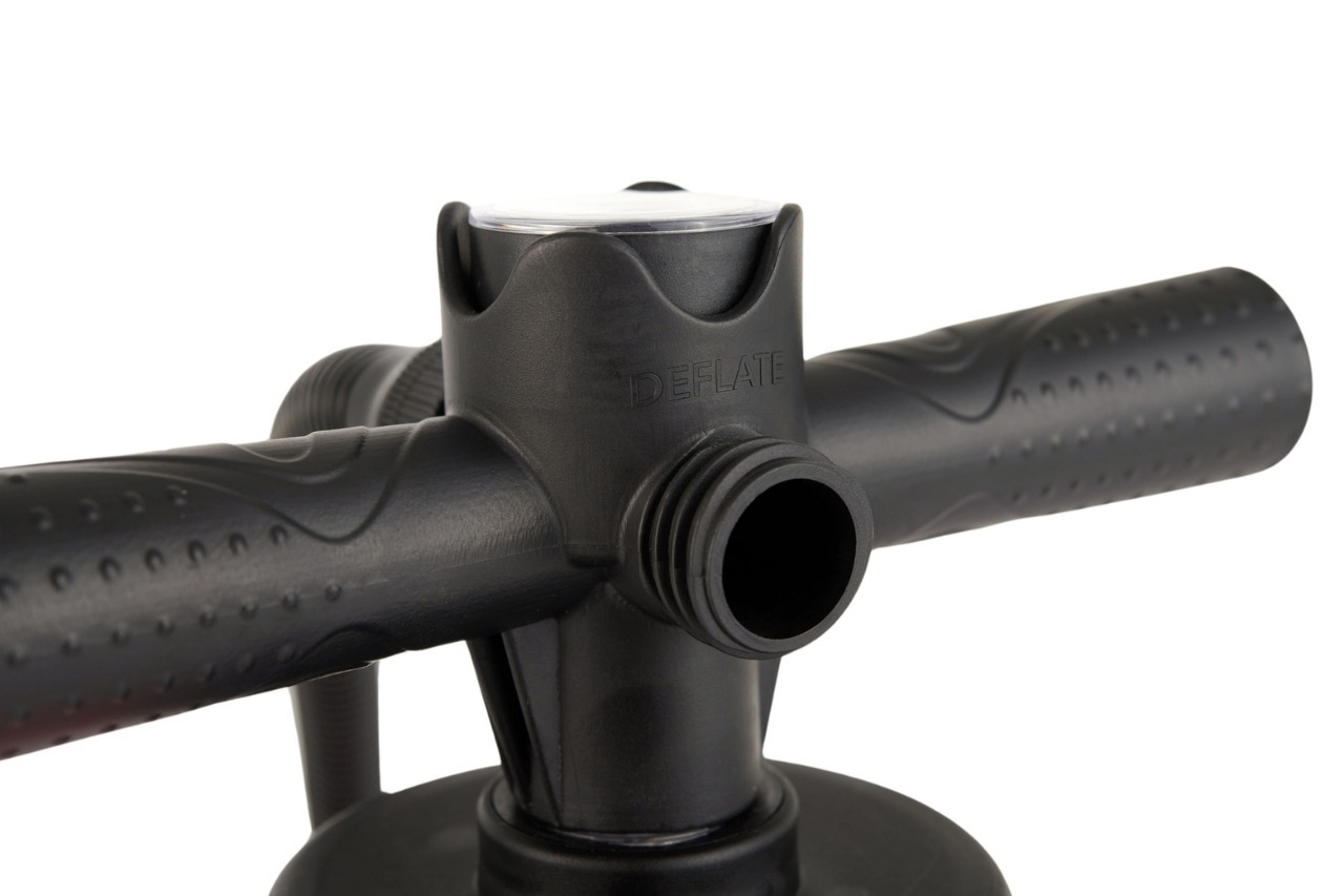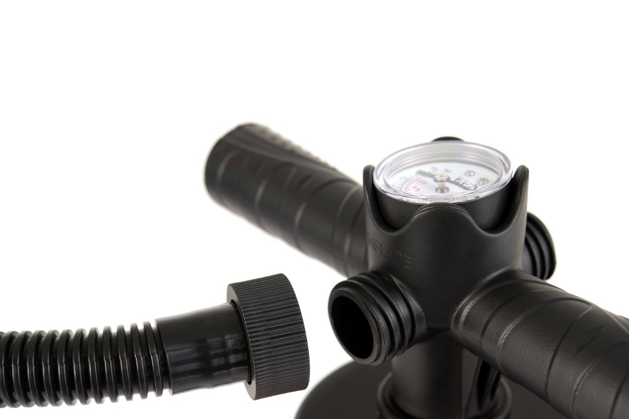 Ergonomiczna i łatwa w użyciu pompka ręczna do kajaków i pontonów wyposażona w manometr oraz 5 wymiennych końcówek. Tryb Double Action zwiększa wydajność pompując w dwóch kierunkach (2 l + 2 l), a czytelny manometr zapewnia precyzję w pompowaniu sprzętów do 14.5 psi.