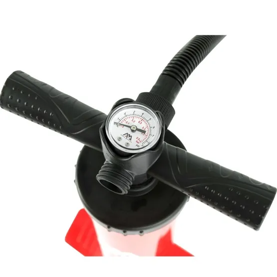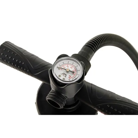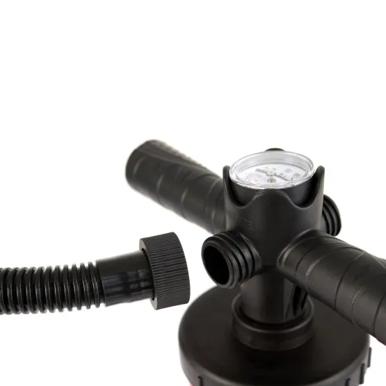 Ergonomiczna i łatwa w użyciu pompka ręczna do kajaków i pontonów wyposażona w manometr oraz 5 wymiennych końcówek. Tryb Double Action zwiększa wydajność pompując w dwóch kierunkach (2 l + 2 l), a czytelny manometr zapewnia precyzję w pompowaniu sprzętów do 14.5 psi.