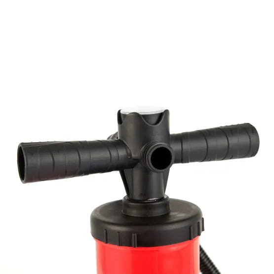 Ergonomiczna i łatwa w użyciu pompka ręczna do kajaków i pontonów z w budowanym manometrem oraz 5 wymiennymi końcówkami. Tryb Double Action zwiększa wydajność pompując w dwóch kierunkach (1,4 l + 1,4 l), a czytelny manometr zapewnia precyzję w pompowaniu sprzętów do 14.5 psi.