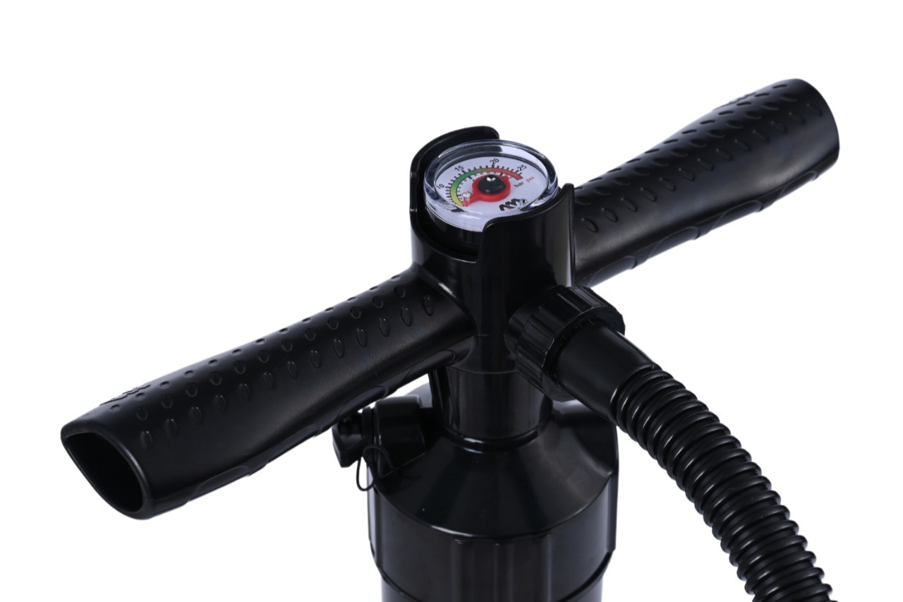 Ergonomiczna i łatwa w użyciu pompka ręczna do desek SUP. Tryb Double Action zwiększa wydajność oferując pompowanie w dwóch kierunkach (2,2 l + 2,2 l), a wbudowany manometr zapewnia precyzję w pompowaniu desek do 20 psi. Posiada wstrząsoodporny manometr, przełącznik trybów oraz aluminiowy tłok.