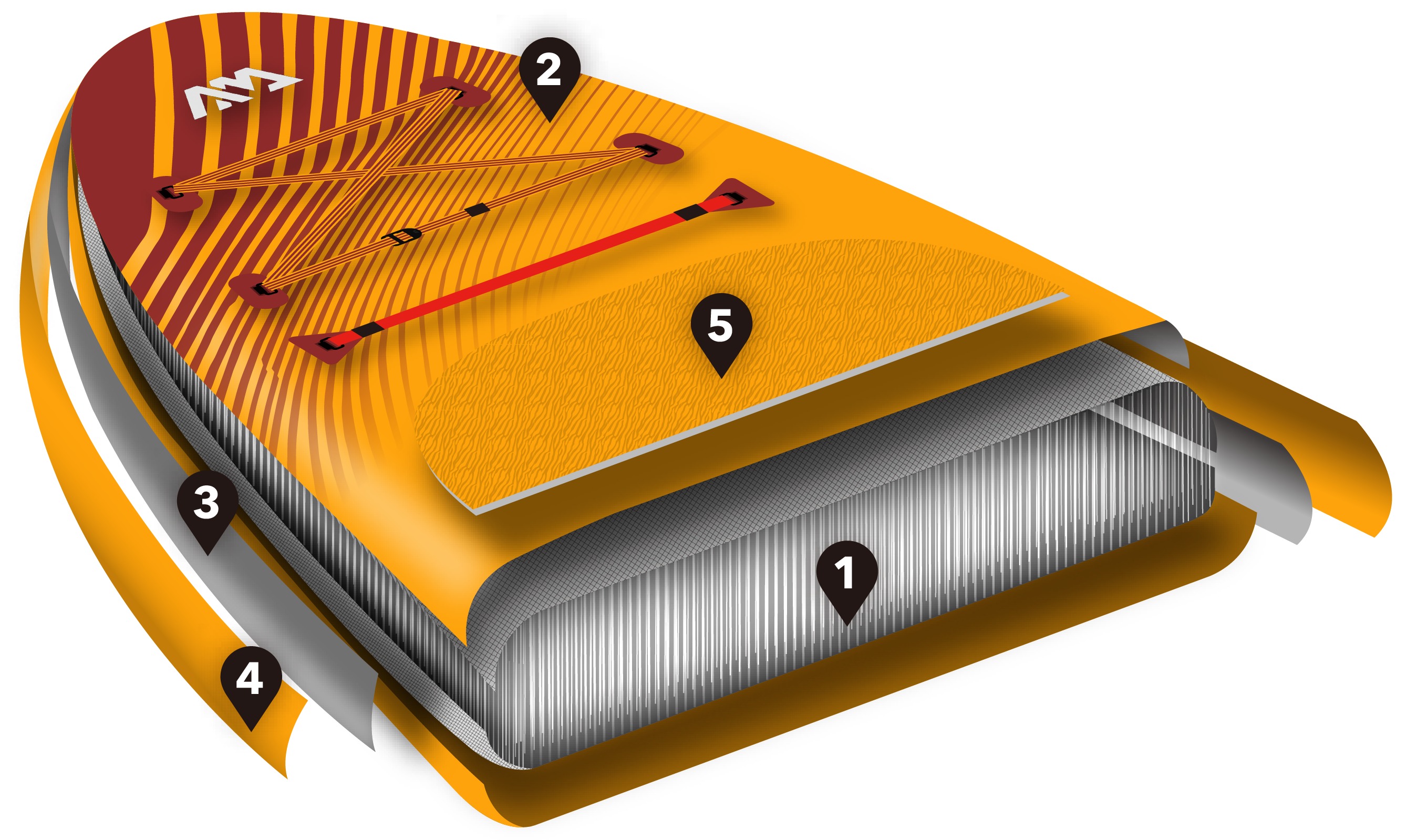 Deska została wykonana przy użyciu technologii Drop Stitch Light, co zapewnia jej niską wagę