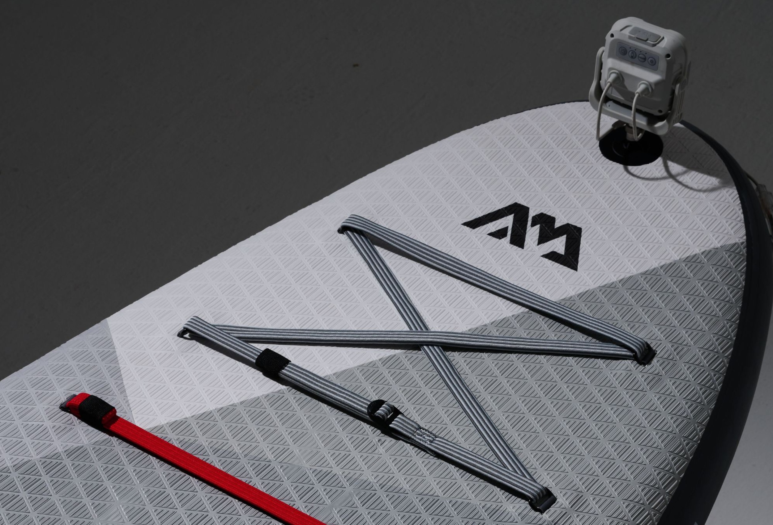 Na przodzie deski znajduje się system płaskich linek – bungee RED STRAP™, służący do bezpiecznego przymocowania bagażu oraz niezbędnych osobistych rzeczy na czas wyprawy.