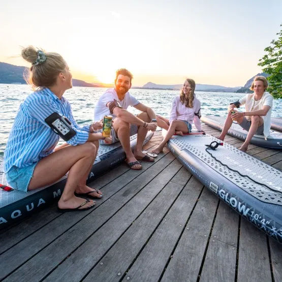 Chcesz doświadczyć magicznych wrażeń na wodzie? Sup GLOW 10’4 to pierwszy na świecie świecący paddleboard. Posiada on innowacyjny system Ambient Light System™ oraz mocną lampę LED na dziobie, dzięki którym będziesz mógł pływać po zmroku.