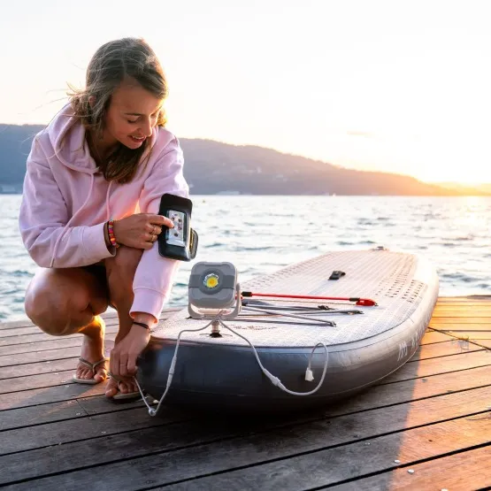 Na dziobie deski umieszczona została lampa LED, która pełni funkcję akumulatora całego oświetlenia deski. Dzięki innowacyjnego systemowi możesz pływać na paddleboardzie całą noc