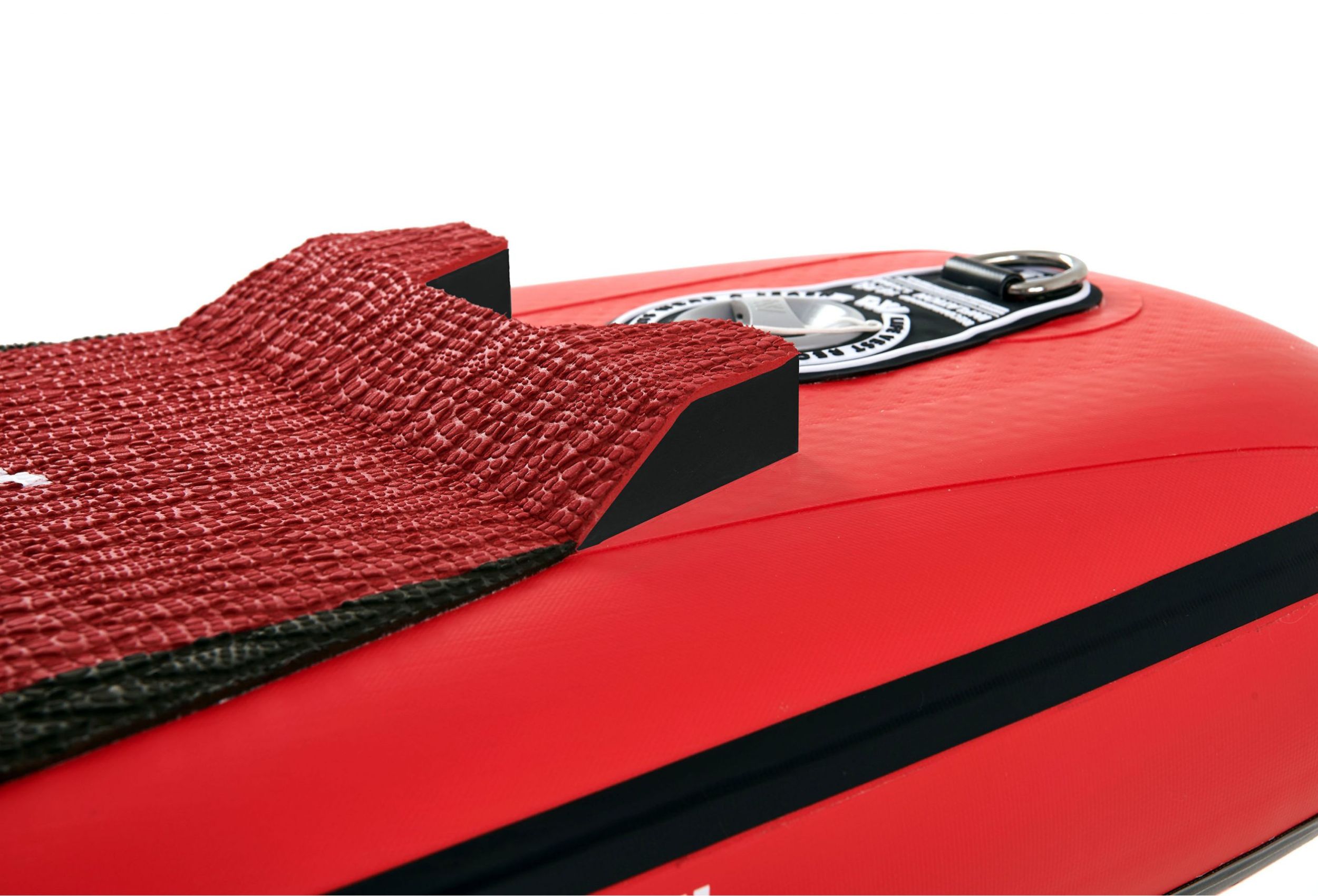 Na rufie deski znajduje się stalowe kółeczko D-ring do zapięcia leasha