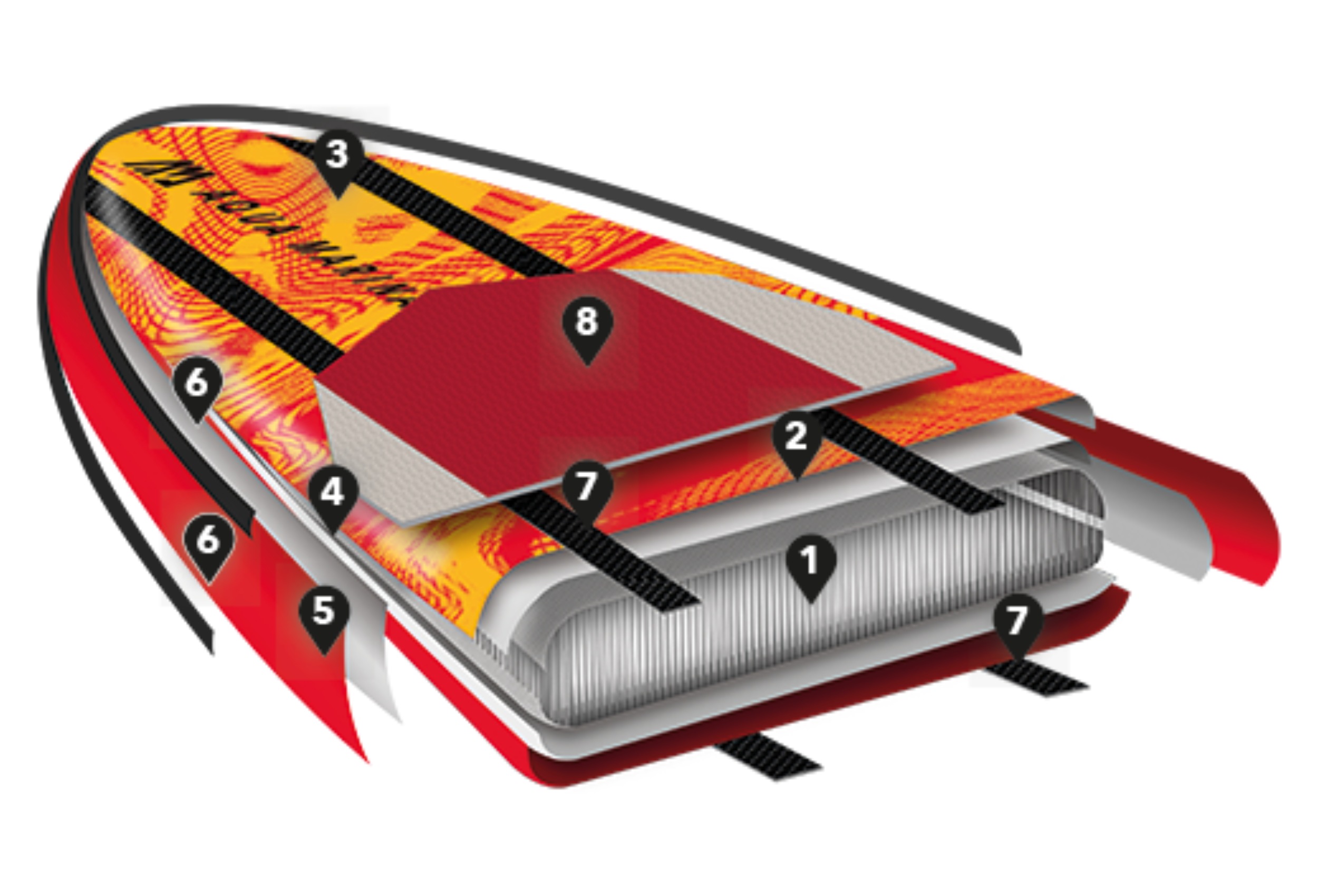 Została wykonana w technologii premium, wykorzystywanej w paddleboardach wyścigowych. Double Layer Quadruple Stringer to konstrukcja, która nadaje desce niezrównaną sztywność. Składa się z drop-stitch’owego rdzenia i podwójnej warstwy paneli PVC, a po obu stronach deski wzmocniona jest stringerami.