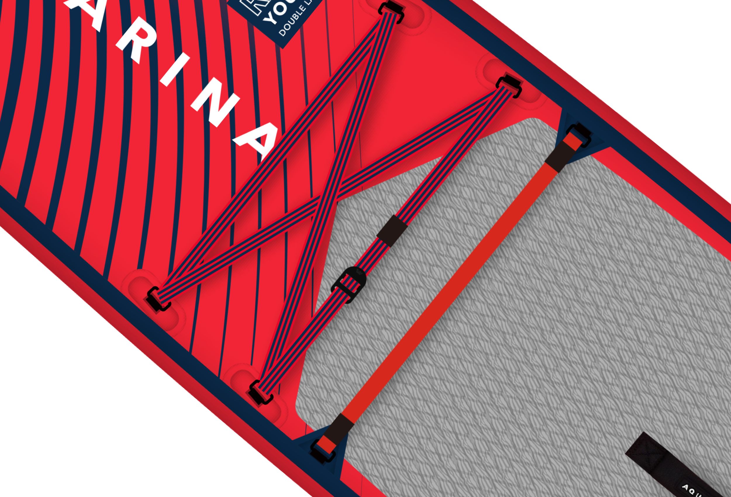 Elastyczna linka typu bungee i Red Strap na przodzie pokładu, umożliwia mocowanie bagażu i rzeczy osobistych. Deska pokryta jest miękką pianką EVA, która zapewnia doskonały komfort stopom i znakomitą przyczepność, chroniąc przed poślizgiem. Natomiast na tylnej części deski znajduje się podwyższona pianka zwana „kickpadem”, mająca ułatwić wykonywanie szybkich manewrów typu pivot.