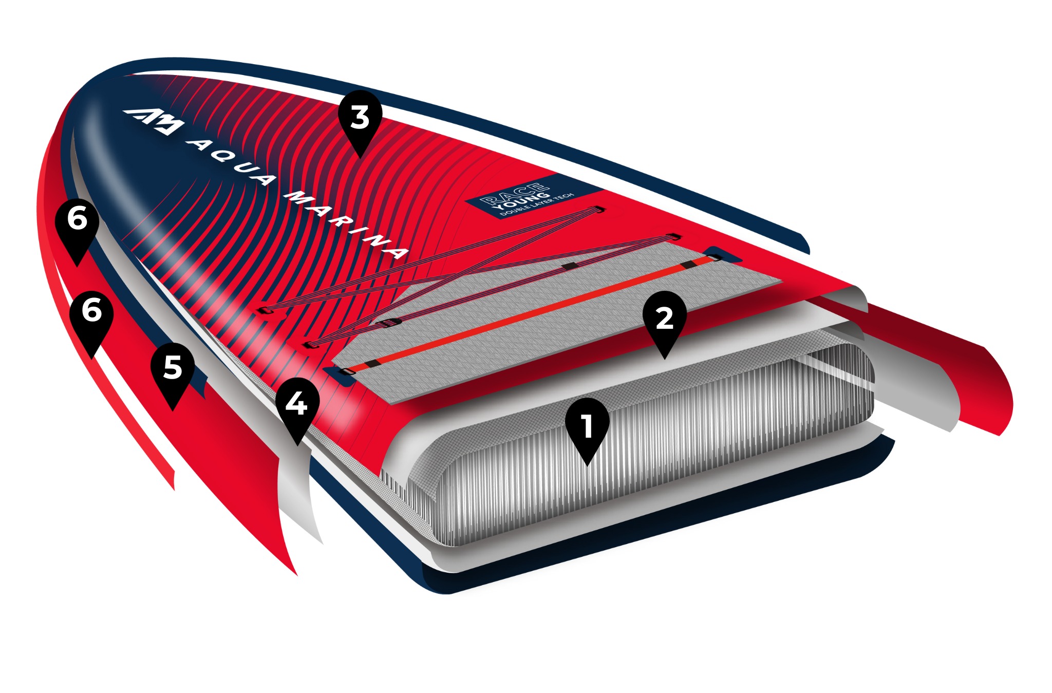 W produkcji wykorzystano dwuwarstwową technologię Drop-Stitch ze wzmocnionymi panelami bocznymi, na których znajduje się trzecia warstwa ochronna z PVC.