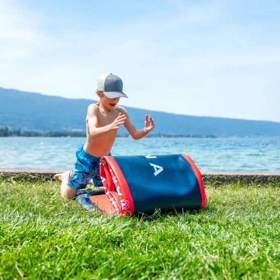 Najmłodsi paddelbordziści bez problemu samodzielnie poradzą sobie z napompowaniem deski, dzięki dwufunkcyjnej pompce Liquid Air V1. Statecznik Swift Attach Racing Fin typu Click-IN jest prosty w montażu, dzięki temu młody użytkownik SUP’a poradzi sobie błyskawicznie i znajdzie się szybko na wodzie. Do zestawu dołączony jest też leash przyczepiany do kostki dziecka, dzięki któremu może czuć się bezpiecznie, a SUP od niego nie odpłynie. Cały zestaw młody zapaleniec zapakuje do wygodnego plecaka transportowego wyprodukowanego w 100 % z materiałów z recyklingu.