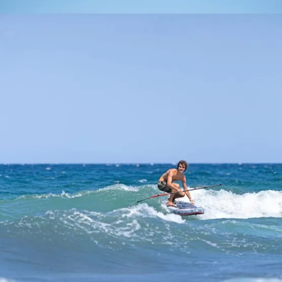 Wave 8'8 to pompowana deska SUP stworzona do pływania i surfowania po falach! Lekka, sztywna konstrukcja z szeregiem rozwiązań dla lepszej zwrotności i osiągów na wodzie – system 3 finów, węższy uniesiony dziób i kickpad. Wave jest przeznaczony dla entuzjastów surfingu, którzy chcą łatwo pokonywać fale i manewrować na nich bez utraty prędkości.