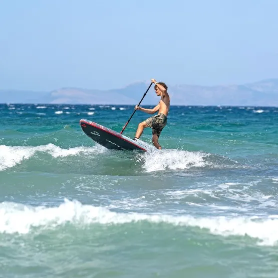 Pompowana deska posiada węższy, uniesiony dziób, który ogranicza zanurzanie. Większy rocker przekłada się na dużo lepsze prowadzenie deski. Za dobre trzymanie kierunku i skrętność odpowiadają również 3 stateczniki w układzie Thruster spotykanym w klasycznych deskach do surfowania. Finy posiadają innowacyjny system mocowania Swift Attach – dla szybkiego montażu bez użycia narzędzi. Mniejsze stateczniki są specjalnie skonstruowane, aby zapewnić optymalne działanie deski w każdej sytuacji. Kickpad na rufie znacząco ułatwia kontrolę w zakrętach i na falach.