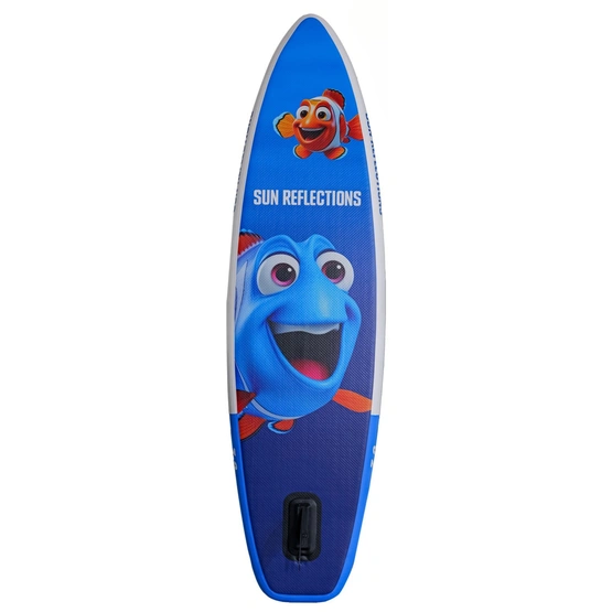 Deska SUP Star SUN REFLECTIONS 8’2’’ została zaprojektowana z myślą o najmłodszych użytkownikach, którzy dopiero zaczynają swoją przygodę ze stand up paddle. Niewielkie wymiary i niska waga ułatwiają dzieciom manewrowanie na wodzie, a atrakcyjna grafika – z rozgwiazdą i rybką przypominającą postać z bajki NEMO – sprawia, że nauka pływania staje się jeszcze bardziej angażująca.