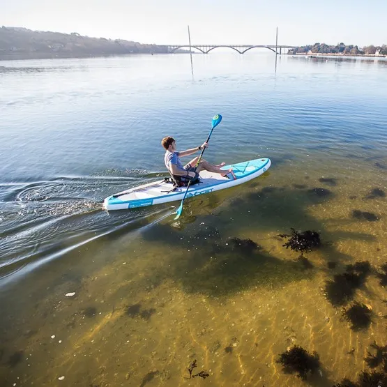 A gdy tylko będziesz gotów na spokojny relaks, Discovery Premium jest wyposażony w wygodne siedzenie i bezpieczny pasek na nogi, co pozwala łatwo przekształcić deskę SUP w tryb kajak, umożliwiając wydłużone eksploracje w pozycji siedzącej.
