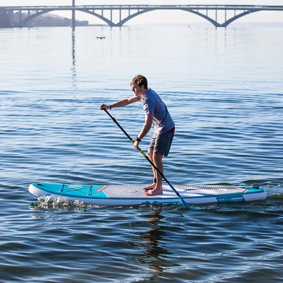 Niezależnie od tego, czy poruszasz się po spokojnych wodach, czy polujesz na małe fale na tętniącym życiem wybrzeżu, ta pompowana deska SUP została zaprojektowana dla osób na wszystkich poziomach zaawansowania, aby cieszyć się każdą chwilą spędzoną na wodzie. Wszechstronność tego modelu pozwala na dołączenie zestawu windsurfingowego i używanie go jako windSUP lub siedziska i przekształcenie go w kajak.