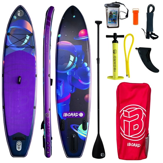iBOARD 11′ Astronaut to pompowana deska SUP, która wpadnie w oko każdemu, kto fascynuje się kosmosem. Deska sprawdzi się do rekreacyjnego pływania po jeziorach, spokojnych rzekach i morskich zatokach. Stworzona zarówno dla początkujących, jak i średniozaawansowanych użytkowników. W zestawie znajdziesz wszystkie niezbędne akcesoria do rozpoczęcia przygody na wodzie (plecak, wiosło, pompkę, leash, fin, zestaw naprawczy oraz wodoodporne etui na smartphona).