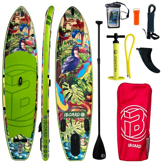 iBOARD 11' to pompowana deska SUP, która wyróżnia się kolorowymi grafikami. Toucan – tropikalny tukan wśród liści i kwiatów to propozycja dla miłośników egzotycznej fauny. Deska sprawdzi się do rekreacyjnego pływania po jeziorach, spokojnych rzekach i morskich zatokach. Stworzona zarówno dla początkujących, jak i średniozaawansowanych użytkowników. W zestawie znajdziesz wszystkie niezbędne akcesoria do rozpoczęcia przygody na wodzie (plecak, wiosło, pompkę, leash, fin, zestaw naprawczy oraz wodoodporne etui na smartphona).