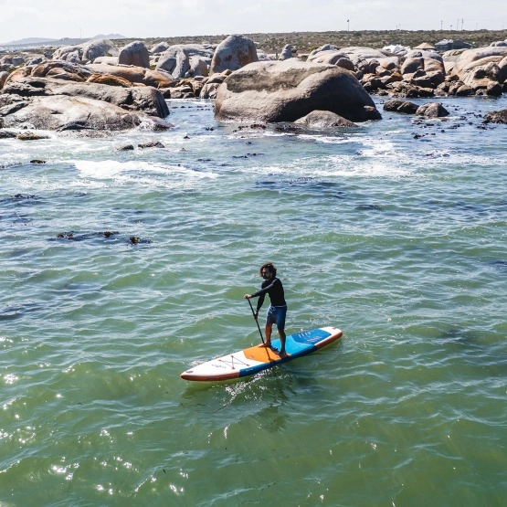 Węższy nos pozwala zminimalizować opory wody z przodu, co skutkuje szybszym ślizgiem przy każdym pociągnięciu wiosła. Kształt zapewnia doskonałe trzymanie kierunku, a w konsekwencji mniejszą liczbę zmian strony wiosłowania. Dodatkową zaletą jest szersza rufa, która znacznie poprawia stabilność deski. Świetna rekomendacja dla tych, którzy nie są pewni, jaką deskę kupić.