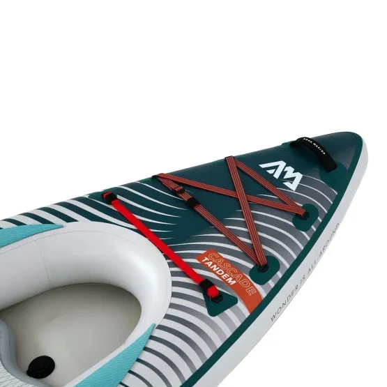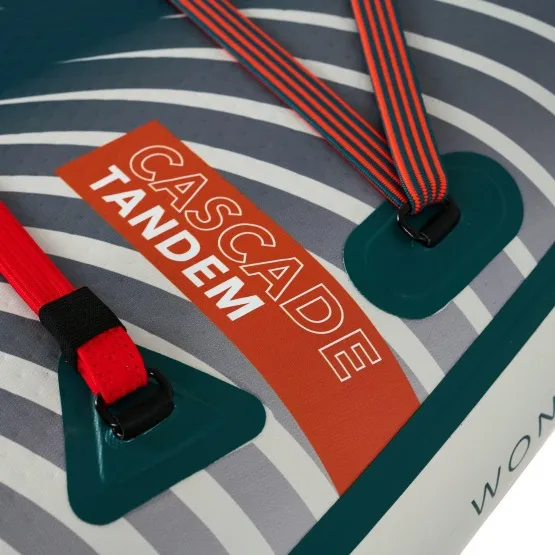 Cascade Tandem został wyprodukowany z zastosowaniem innowacyjnej technologii Drop Stitch Light, która zapewnia doskonałą wytrzymałość, lekkość i sztywność deski. Każda komora kajakowa posiada zawór spustowy do usuwania wody z pokładu.