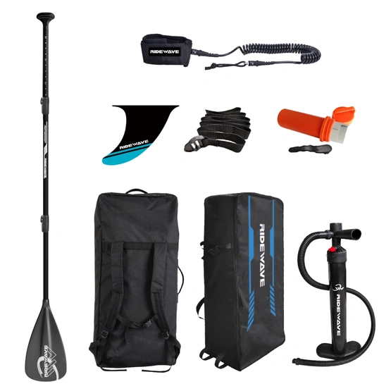RideWave Romantic 12’0” to deska SUP typu allround, idealna do rekreacyjnego pływania po jeziorach, rzekach i spokojnym morzu. Świetnie sprawdzi się dla początkujących i średniozaawansowanych użytkowników. Dzięki D-ringom umożliwia montaż opcjonalnego siedziska kajakowego. W zestawie znajduje się: plecak transportowy, pompka dwukierunkowa, aluminiowe wiosło 3-częściowe, leash oraz zestaw stateczników. Wymiary deski: 365×81×15 cm. Max. ciśnienie: 15 psi.
